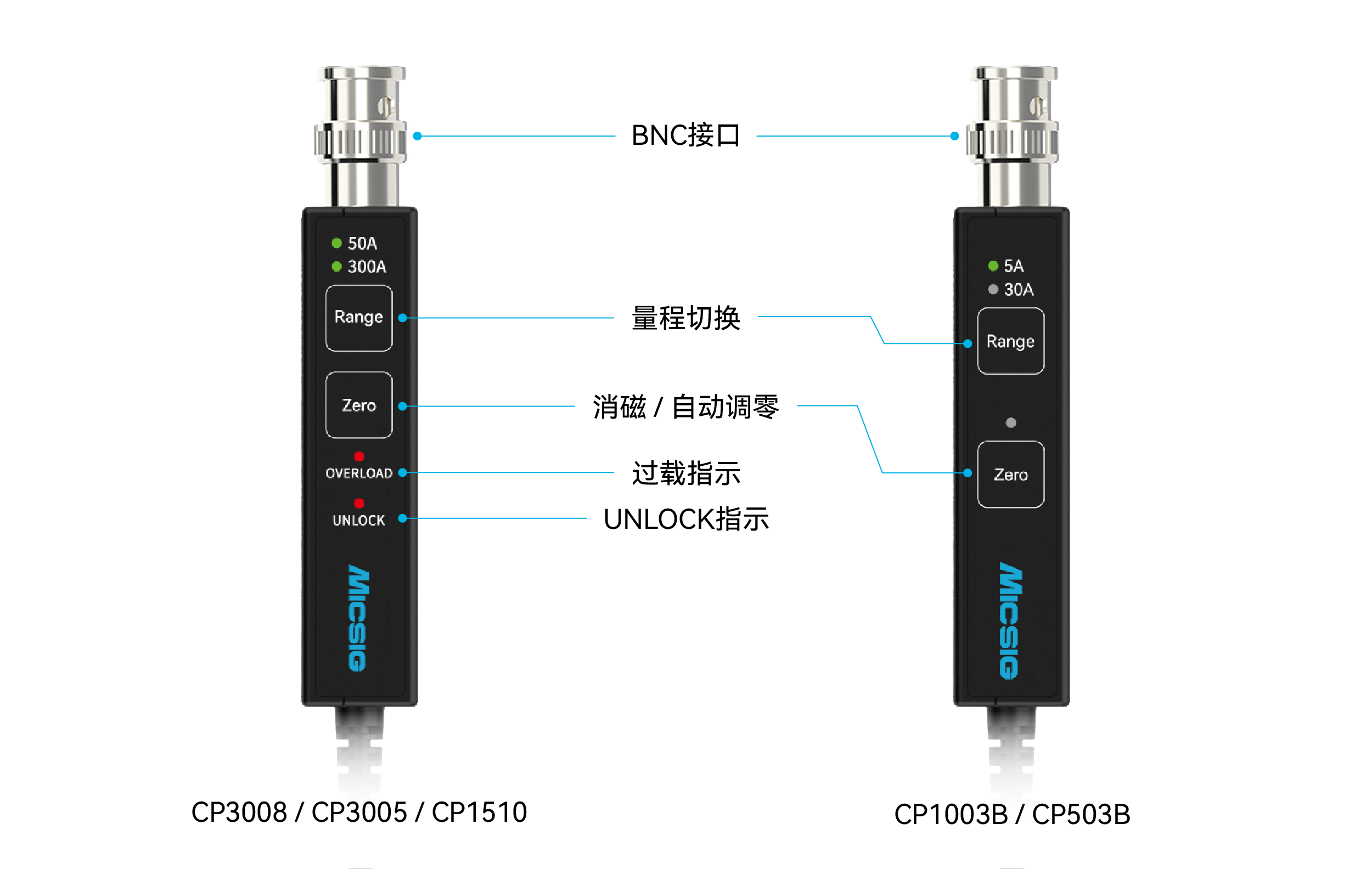 麦科信 (Micsig) 高频交直流电流探头 CP 系列,核心性能突出:带宽高达 100MHz,最大连续电流 300Arms,搭配 1% 的高精度与 1mA 的高分辨率,能精准捕获电流波形并提供高精度测量结果;同时采用双量程设计,覆盖小信号精密检测与大电流瞬态分析,助力工程师优化产品设计。使用便利与兼容性表现优异:提供 5/20mm 两种钳口直径可选,钳口设计简单易用,消磁和自动调零可一键完成,内置过流报警设计,提醒量程切换;采用标准 BNC 接口,兼容所有品牌示波器;适配新能源、工业电子等多场景测试需求。